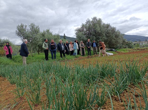 In Jendouba wurde im Juni 2024 die gemeinschaftliche Gestaltung eines Agroforstgartens für alleinstehende Frauen angestoßen. Als Partner für diesen Austausch diente eine lokale GDA („groupement de développement agricole“, landwirtschaftliche Entwicklungsgruppe). Gemeinsam mit Frauen, die als Versorgerinnen der Familie allein dastehen, wurde das Thema der nachhaltigen Ernährungssicherheit ins Praktische umgesetzt: Mithilfe von lokalen Anwohner*innen wurde eine Fläche der GDA als Beispiel für nachhaltige Landwirtschaft und traditionelle Landnutzung mit geringem Wasserverbrauch umgestaltet und wird nun von den 30 Kleinbäuerinnen der Gruppe bewirtschaftet. Sie können so für den eigenen Bedarf Gemüse, Obst und Getreide anbauen und werden von der lokalen Bevölkerung gesehen und unterstützt.