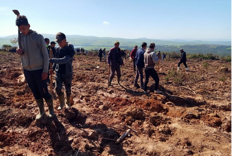 Lors de la visite de la réserve naturelle de "Saddine" par l'équipe du projet, les partenaires du projet ont planté des pins d'Alep indigènes, qui sont certes menacés par la sécheresse due au changement climatique, mais qui présentent toujours de grands avantages pour le site.
