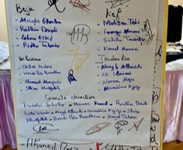 Plus de 70 participants* s'étaient inscrits à la conférence stratégique et ont travaillé tout un week-end sur des objectifs communs et sur les tâches à accomplir pour la protection de la nature et de l'environnement dans le nord-ouest de la Tunisie. A la fin de la conférence stratégique, une charte du réseau ainsi qu'une vision commune ont été formulées et signées par 45 ONG en tant que membres fondateurs.